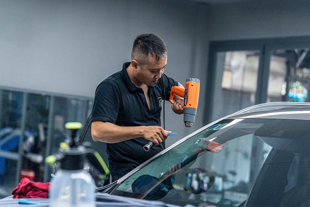 Sử dụng máy sấy với độ nóng vừa phải, an toàn cho kính xe giúp phim ôm sát với độ cong của kính.