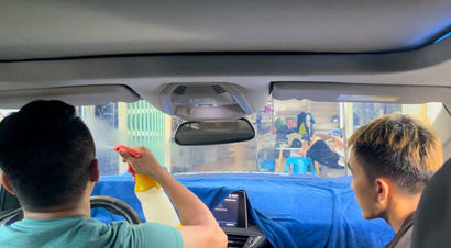 Làm sạch mặt trong của kính xe trước khi dán phim giúp loại bỏ đến 99% bụi mịn, tăng tính thẩm mĩ và độ nét cho kính xe.