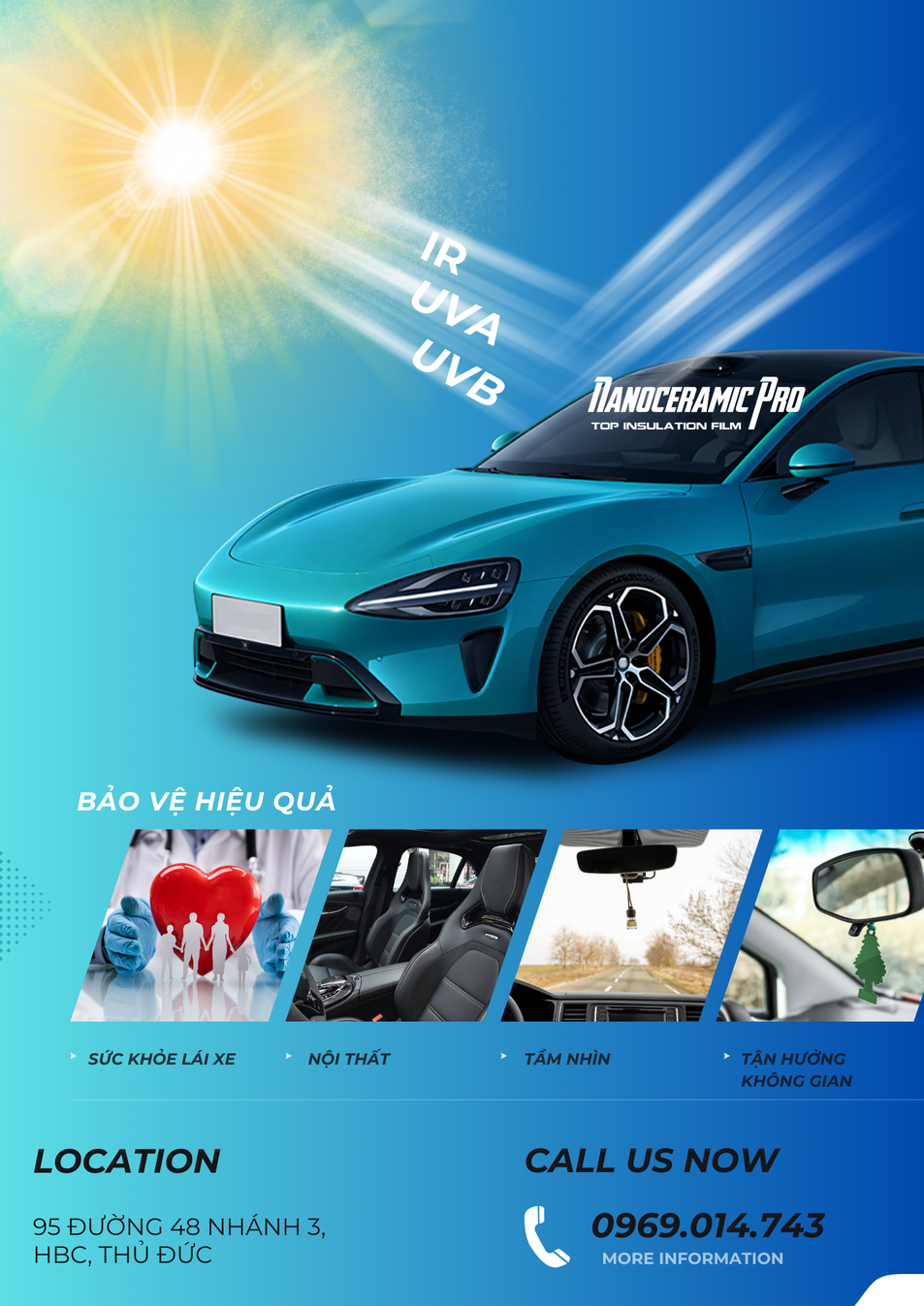 NanoceramicPro là thương hiệu phim cách nhiệt ô tô với giải pháp Chống nắng nóng hiệu quả cao – Lọc UV phổ rộng chuyên sâu – Bảo vệ sức khỏe. Với công nghệ Nano Ceramic đặc biệt, chúng tôi tự hào với dòng phim cách nhiệt mạnh mẽ, ngăn chặn tuyệt đối những tia gây hại, độ bền lâu dài, mang đến không gian mát dịu, góp phần bảo vệ sức khoẻ thể chất và tinh thần cho khách hàng.